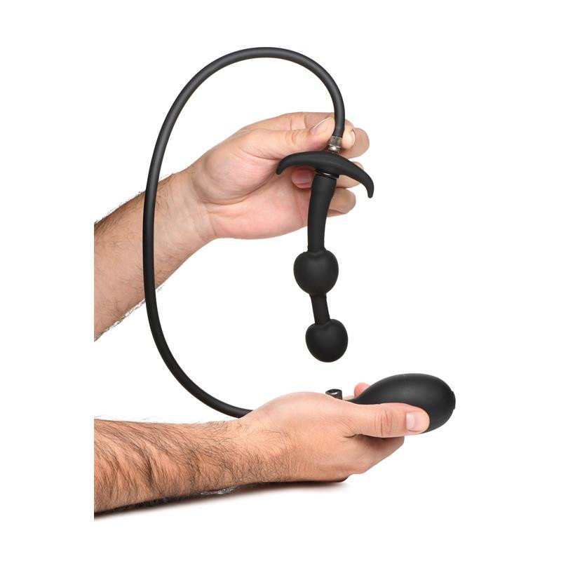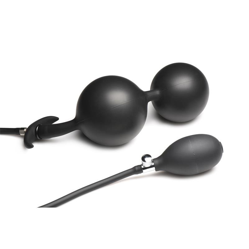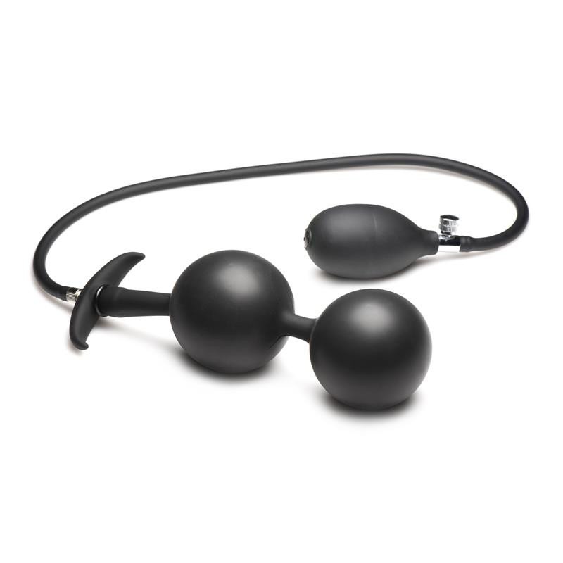 Profundiza en tus fantasías y amplía tu placer con estas bolas anales de silicona con función de inflado con peso. Las dos bolas grandes están hechas de acero resistente y recubiertas de silicona elástica y suave. Podrás inflar las bolas de 3 a 7 cm de ancho para estimular tu punto A o P. Controlas la presión y la liberación con la válvula de liberación rápida incorporada, que te permite desinflar rápida o lentamente.