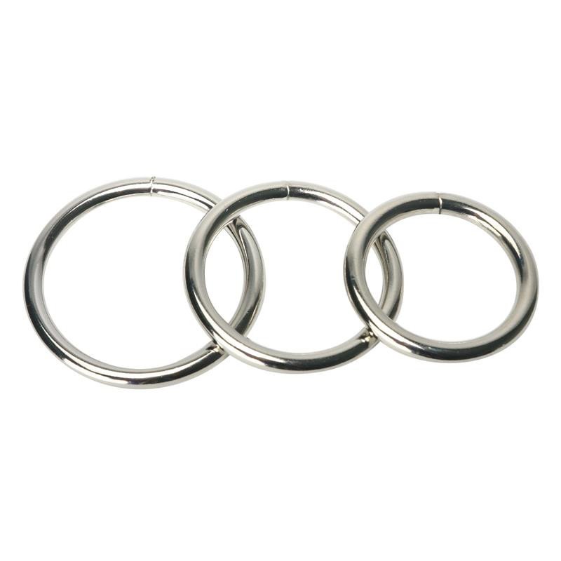 Set de 3 anillos de acero para el pene, tan elegantes como estrictos. Simplemente desliza un anillo Trine sobre el pene y/o rodeando el escroto para un ajuste perfecto. ¡Disfruta del placer! Los anillos de acero Trine se adaptan a la mayoría de los sistemas de arneses.