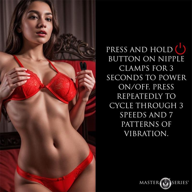 Lleva la estimulación de tus pezones a un nuevo nivel con las Pinzas Vibradoras para Pezones. Explora infinitas posibilidades con 3 velocidades y 7 emocionantes patrones de vibración que prometen sensaciones intensas. Colócalas en cualquier zona de tu cuerpo para explorar tus zonas erógenas. Fabricadas con silicona de alta calidad y segura para el cuerpo, estas pinzas ofrecen un tacto suave y sedoso. Con protuberancias adherentes para una sujeción segura y suave de tus pezones, son perfectas para quienes buscan una estimulación adicional. Recarga cómodamente con la elegante y práctica caja Master Series, que mantiene tus pinzas limpias y listas para tu próxima aventura. Al guardarlas en un estuche tan pequeño y compacto, son fáciles de transportar, discretas y se recargan dentro del estuche. ¡Experimenta lo último en juego con los pezones!