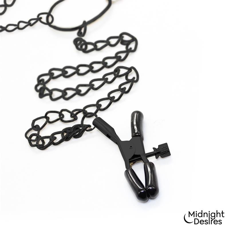¿Quieres experimentar el placer real? Prueba este set con pinzas para pezones y clítoris. Estas pinzas van unidas con una cadena, lo que es ideal para añadir un toque extra de diversión a vuestros encuentros, y las pinzas son clásicas y ajustables.