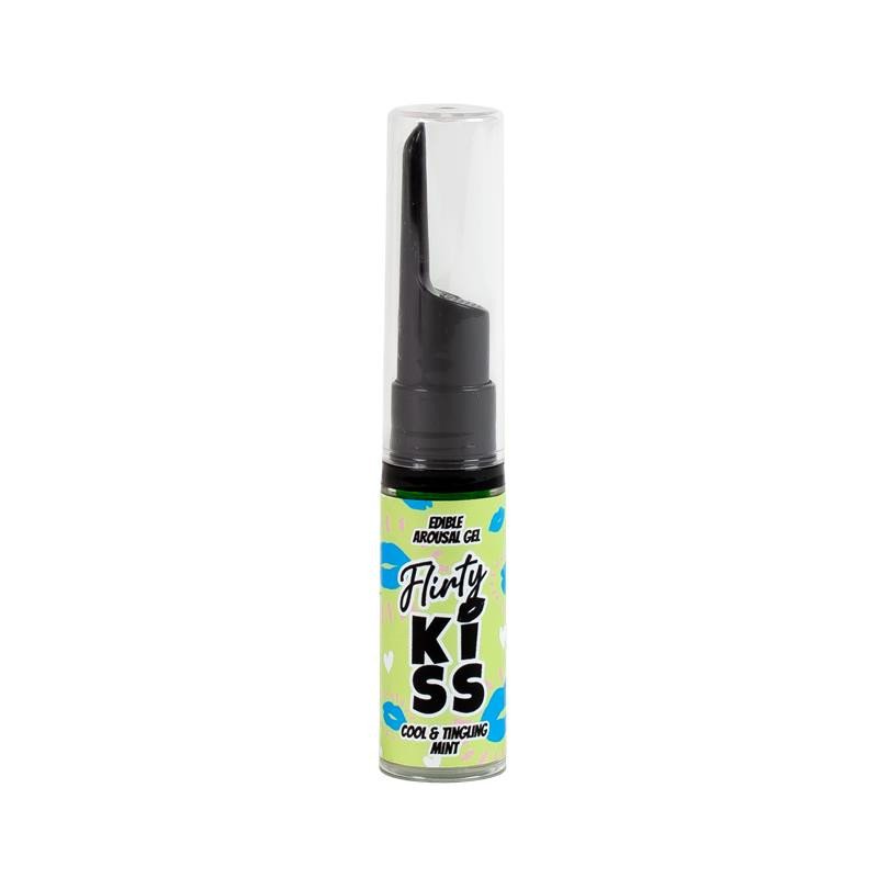 Flirty Kiss está compuesto por 2 geles, 1 gel de fresa con efecto calor picante y 1 gel de menta con frío vibrante.