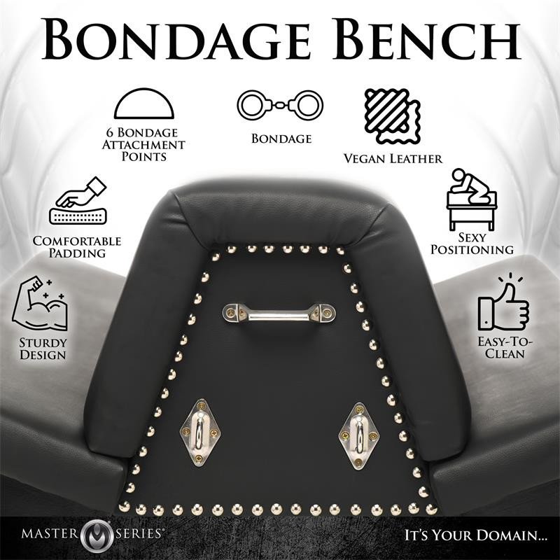 Trasforma il tuo spazio aggiungendo un classico banco di bondage come pezzo centrale del tuo piacere. Il design classico e il morbido cuoio nero, adatto ai vegani, con accattivanti dettagli metallici, risaltano e ti invitano ad abbandonarti ai tuoi desideri più oscuri. Il morbido cuoio sintetico si sente divino sulla pelle nuda mentre ti godi giochi sensuali con il tuo partner! Fissalo al banco con manette che si attaccano a uno qualsiasi dei 6 punti di fissaggio. Eccita e tormenta il tuo sottomesso a tuo piacimento con diversi giocattoli d'impatto e giochi! Questo robusto banco in legno e metallo regge fino a 300 kg in modo che entrambi possiate salirci e godervi l'uno con l'altro. I cuscini imbottiti lo rendono comodo sia per inginocchiarsi, sedersi o sdraiarsi per scene sensuali. Dopo il gioco, puliscilo semplicemente per la prossima volta. Tutto il metallo è privo di nichel per le pelli sensibili.