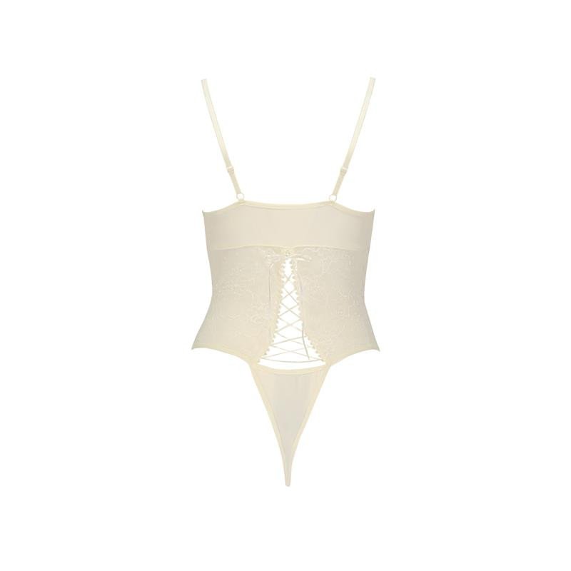 Un body elegante, sensuale ed erotico. Questo body ha un petto ricoperto da un setoso pizzo bianco e un fiocco al centro che dona sensualità.
